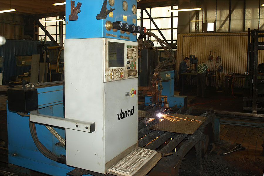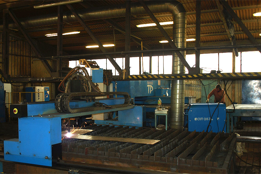 - Wypalarka plazmowo-tlenowa - umożliwia wypalanie elementów z blach o grubości od 3 do 40 mm plazma, do 200 mm cięcie tlenem.